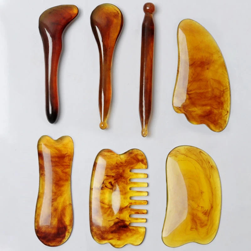 Elevate your self-care routine with this 7PCS Luxury Gua Sha Set. Made from natural resin, these tools are perfect for full-body massage, facial lifting, and contouring the eye and jawline. Promote circulation, reduce tension, and enhance your skin’s natural radiance.