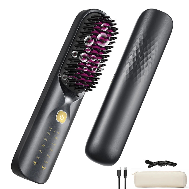 【The Go-To Gift】Stumped on birthdays, Mother's Day, or other special occasions? This cordless hair straightener brush is the perfect gift. It arrives ready to impress with essential accessories—including a travel pouch and hair clips—plus elegant packaging. Give the gift of effortless styling, anytime, anywhere.